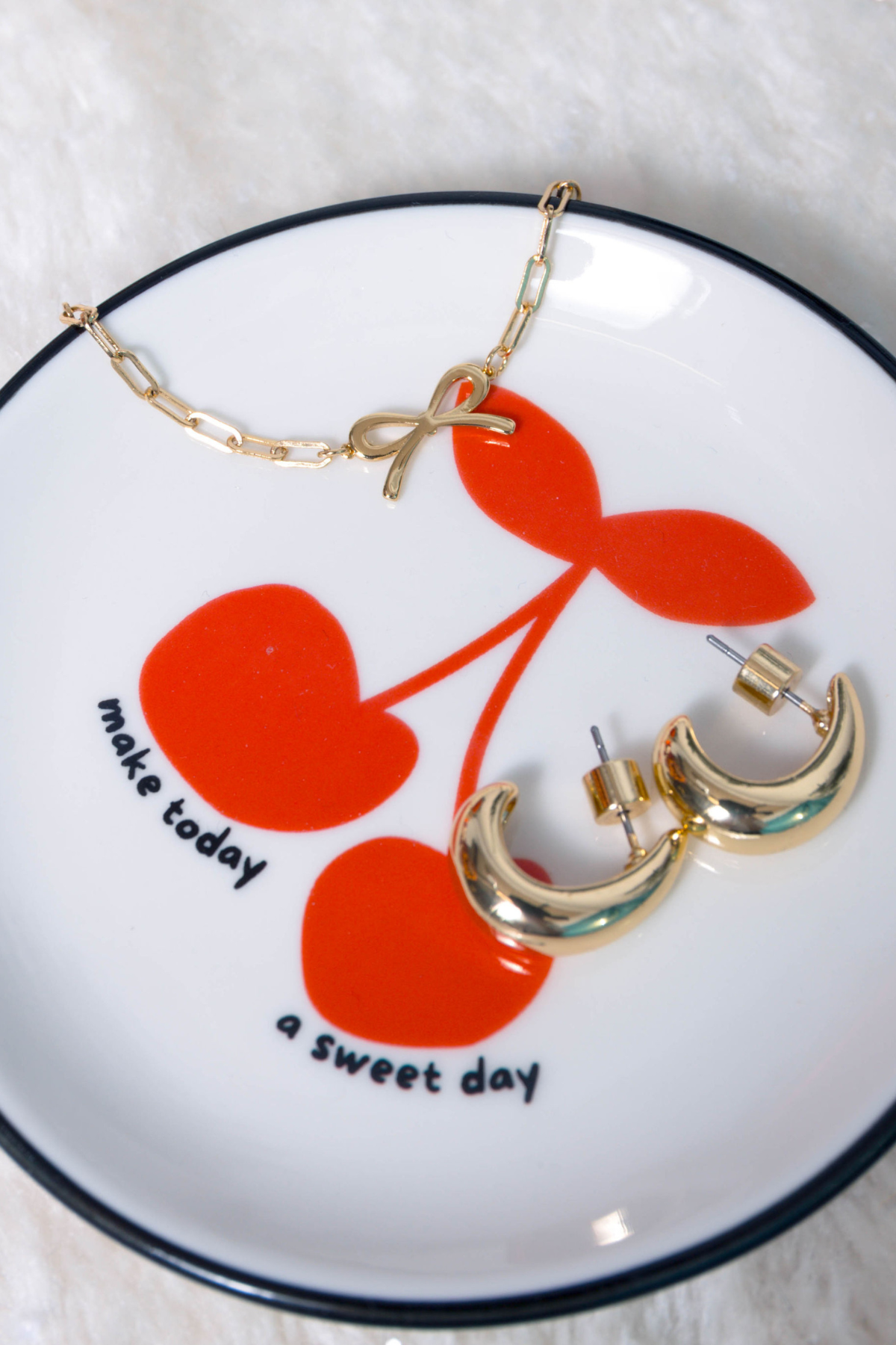 Add a splash of sweetness with the Make Today Sweet Trinket Tray! Perfect for holding jewelry or tiny treasures, this cherry-themed tray doubles as a cheerful décor piece. Its playful design brightens any space and keeps your essentials organized in style. Ideal for adding charm to your collection or offering a delightful impulse buy that customers won’t resist.