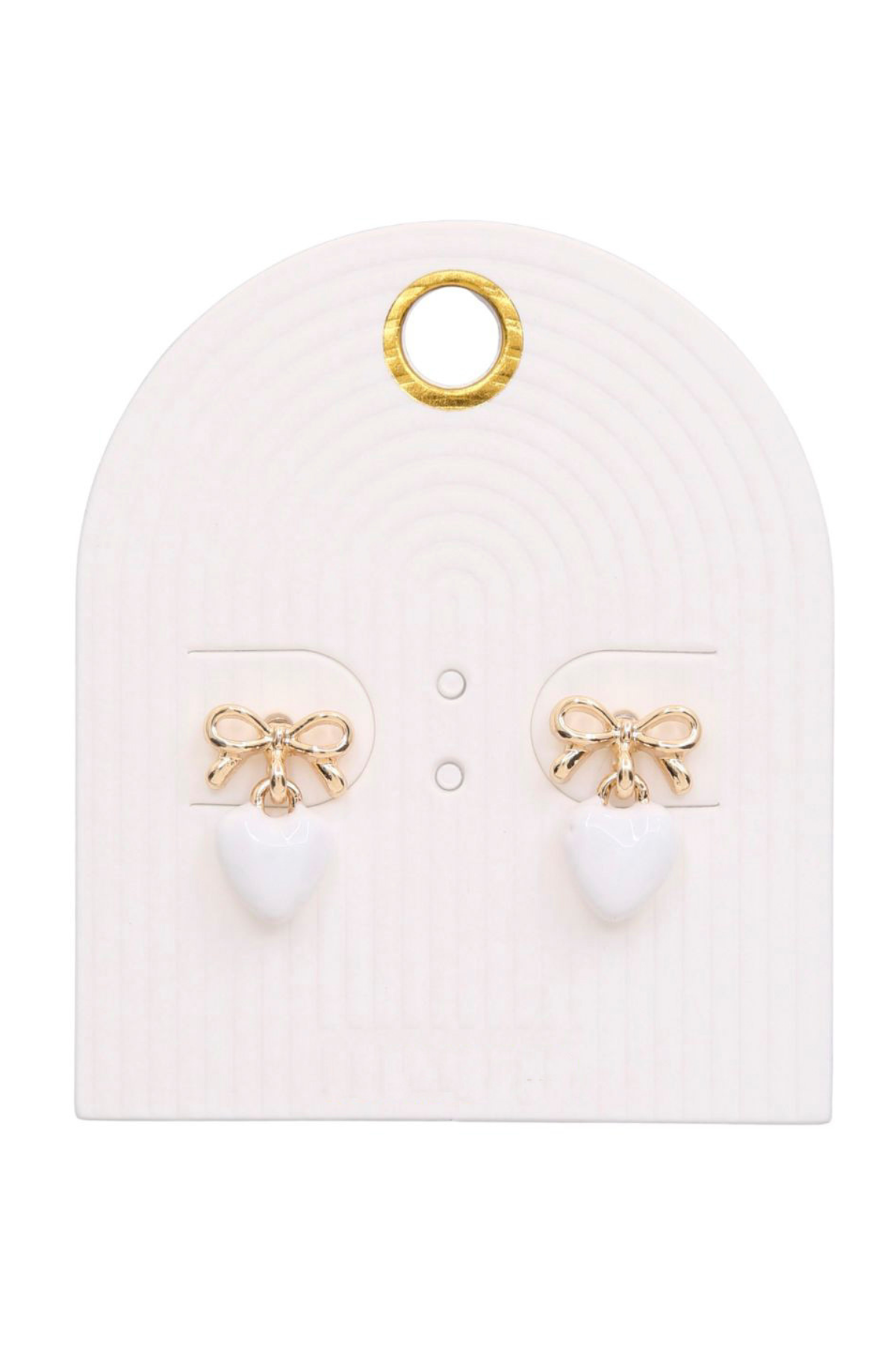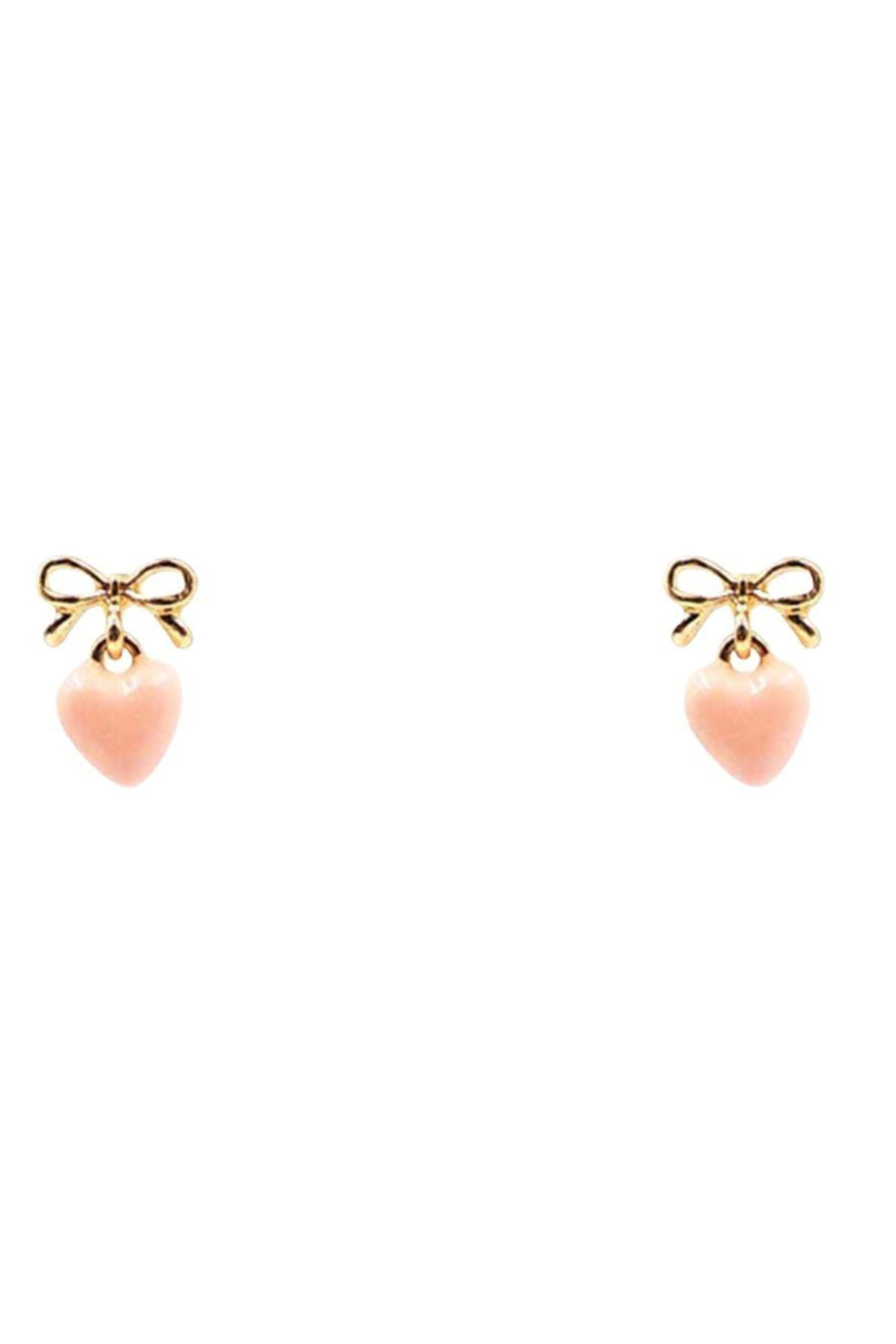 Adorable bow-topped studs that dangle with delicate heart charms—the perfect way to add a touch of whimsy to your everyday look.