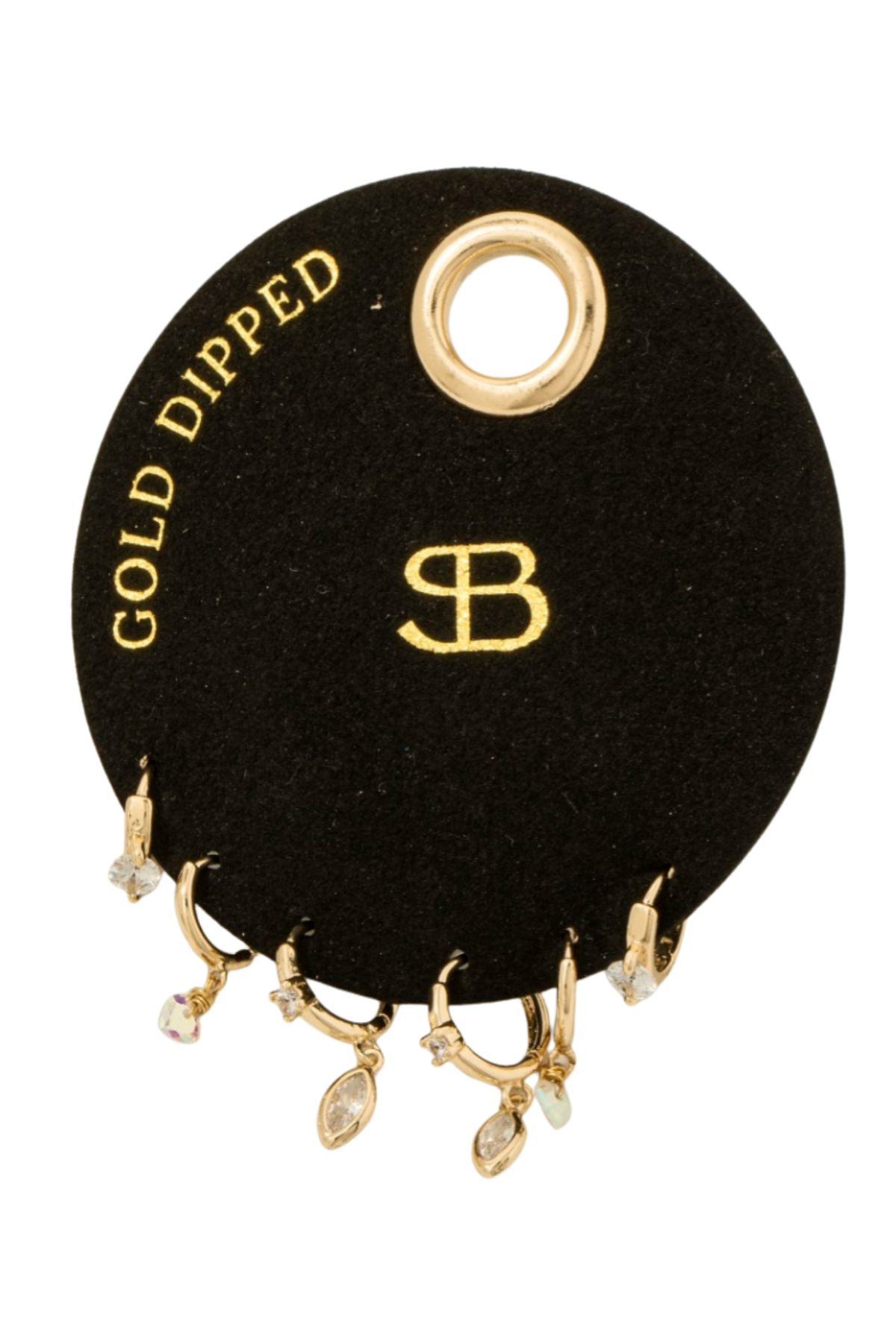 Add a touch of sparkle to your look with the Juliana Earring Set—three pairs of small, dainty oval gem hoop earrings that hug your ears just right. Perfect for mixing, matching, or stacking, these playful hoops bring effortless charm to any outfit.